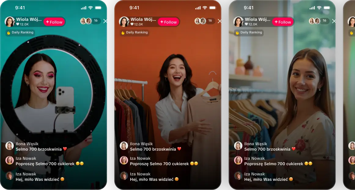 Transmisje w aplikacji - sprzedawaj na LIVE bezpośrednio w aplikacji, gdzie klienci kupują zaledwie jednym kliknięciem!