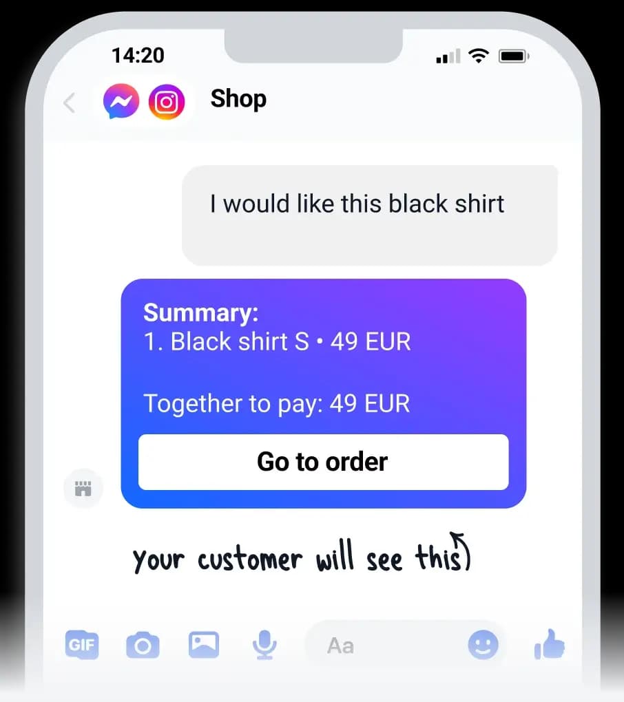 Du skriver tillbaka till kunder direkt på Selmo, oavsett om meddelandena kommer från Facebook eller Instagram